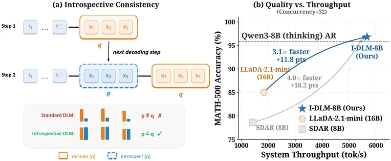 Diffusion language models (DLMs) enable parallel token generation, potentially overcoming the sequential limitations of autoregressive (AR) decoding. However, DLMs currently underperform AR models in quality due to a lack of introspective consistency, where AR models align with their generated outputs.