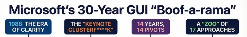 Microsoft's GUI strategy has been inconsistent for over thirty years, leaving developers unclear on the best framework for building Windows desktop applications. Options like WPF, WinUI 3, and Electron create confusion rather than providing a clear direction.