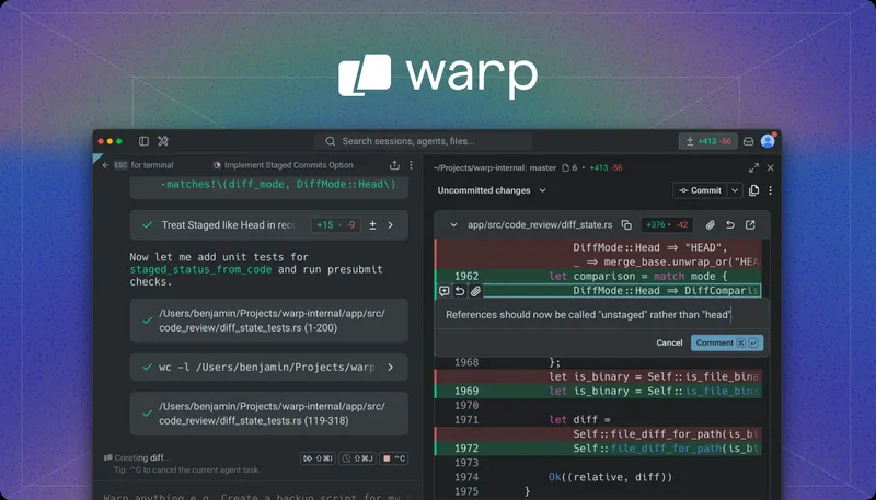 Warp is an agentic development environment that integrates with terminal workflows and supports various coding agents, including Claude Code, Codex, and Gemini CLI. OpenAI is the founding sponsor of the open-source Warp repository, which features a built-in coding agent and customizable UI framework.