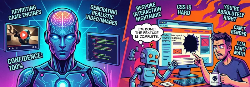 AI excels at generating generic and unoriginal user interface designs, often relying on outdated solutions and common patterns from its training data. While it can efficiently scaffold basic UI elements, the results tend to lack creativity and innovation.